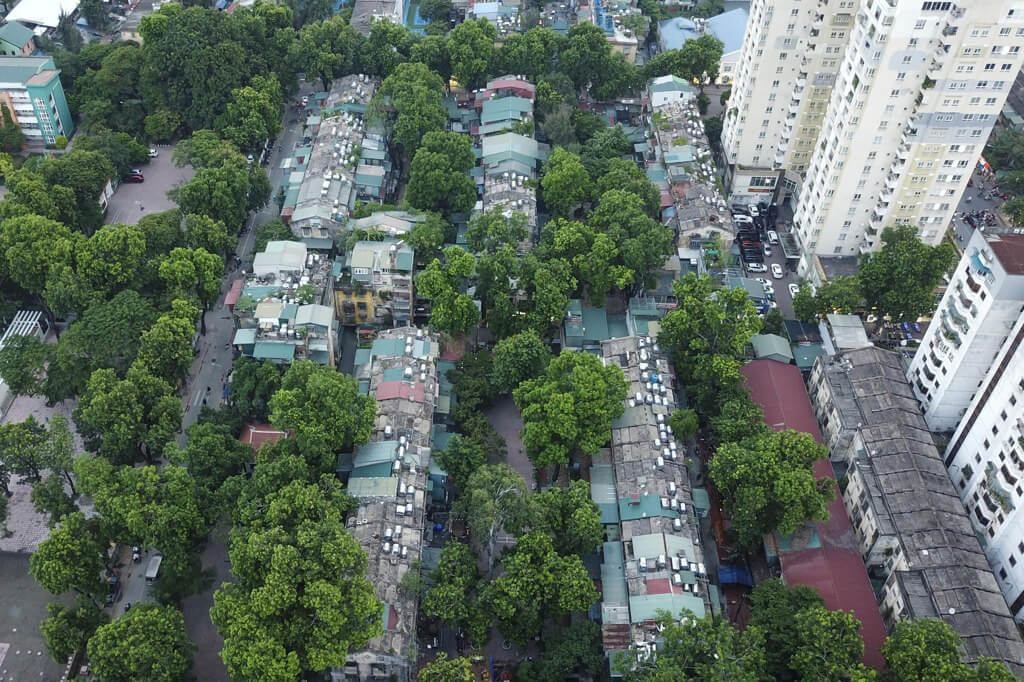 Toàn cảnh khu chung cư và chợ Kim Liên nhìn từ phía trên cao