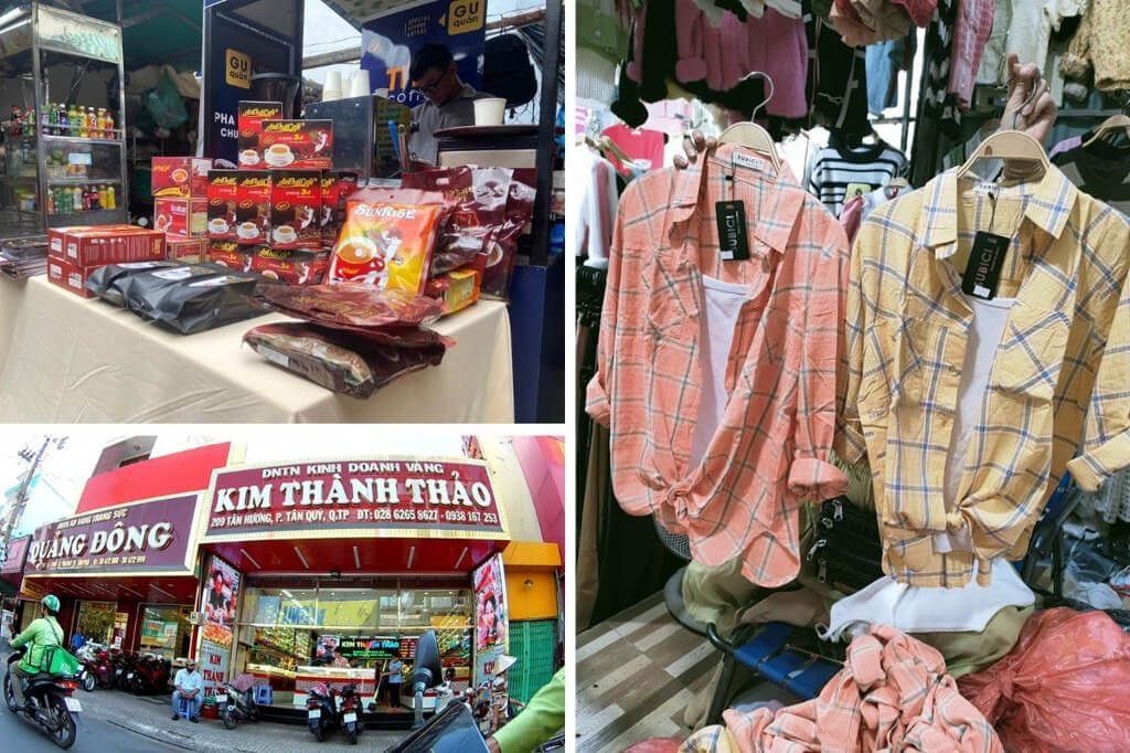 Chợ Tân Hương Tân Phú tập trung bán thực phẩm tươi sống, quần áo, phụ kiện, đồ gia dụng, thiết bị điện tử và thực phẩm chế biến sẵn.